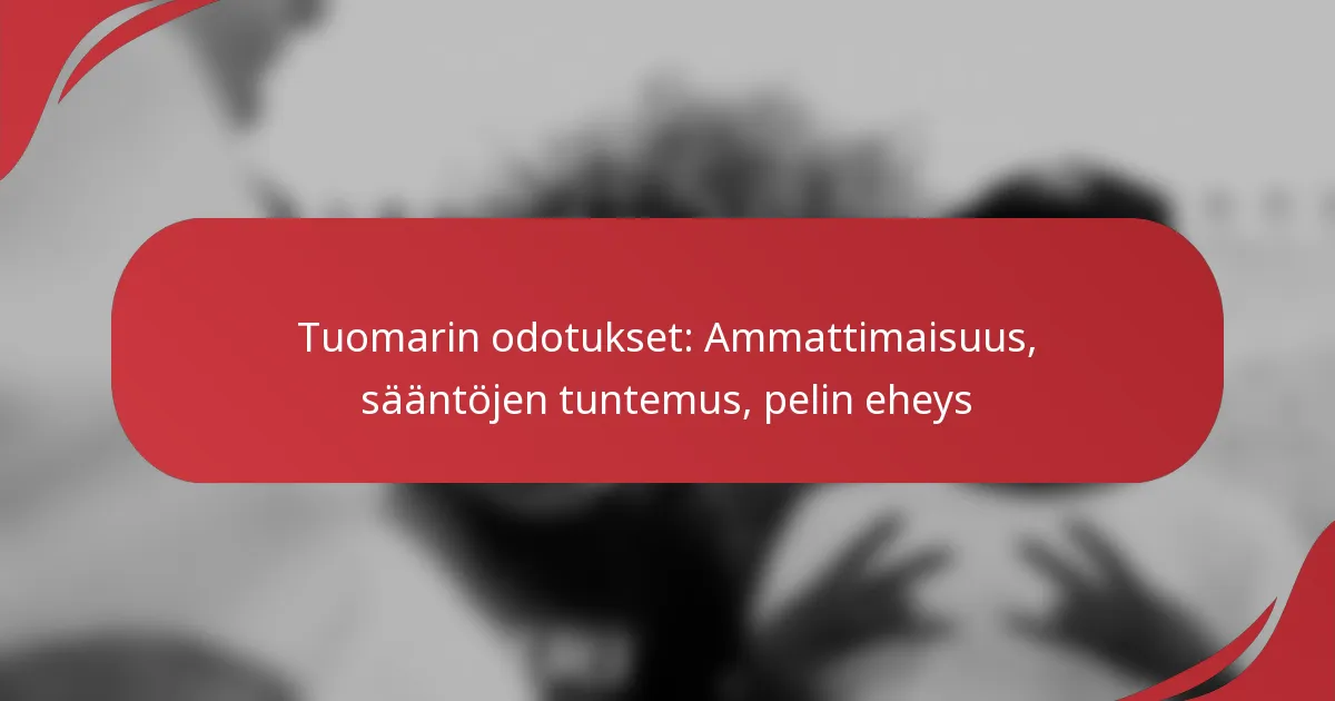 Tuomareiden tulisi pukeutua asianmukaisesti ja noudattaa pelin sääntöjä, sillä tämä asettaa standardin ammatillisuudelle. Lisäksi kunnioittavan sävyn ylläpitäminen, jopa haastavissa tilanteissa, vahvistaa tuomarin auktoriteettia ja uskottavuutta.